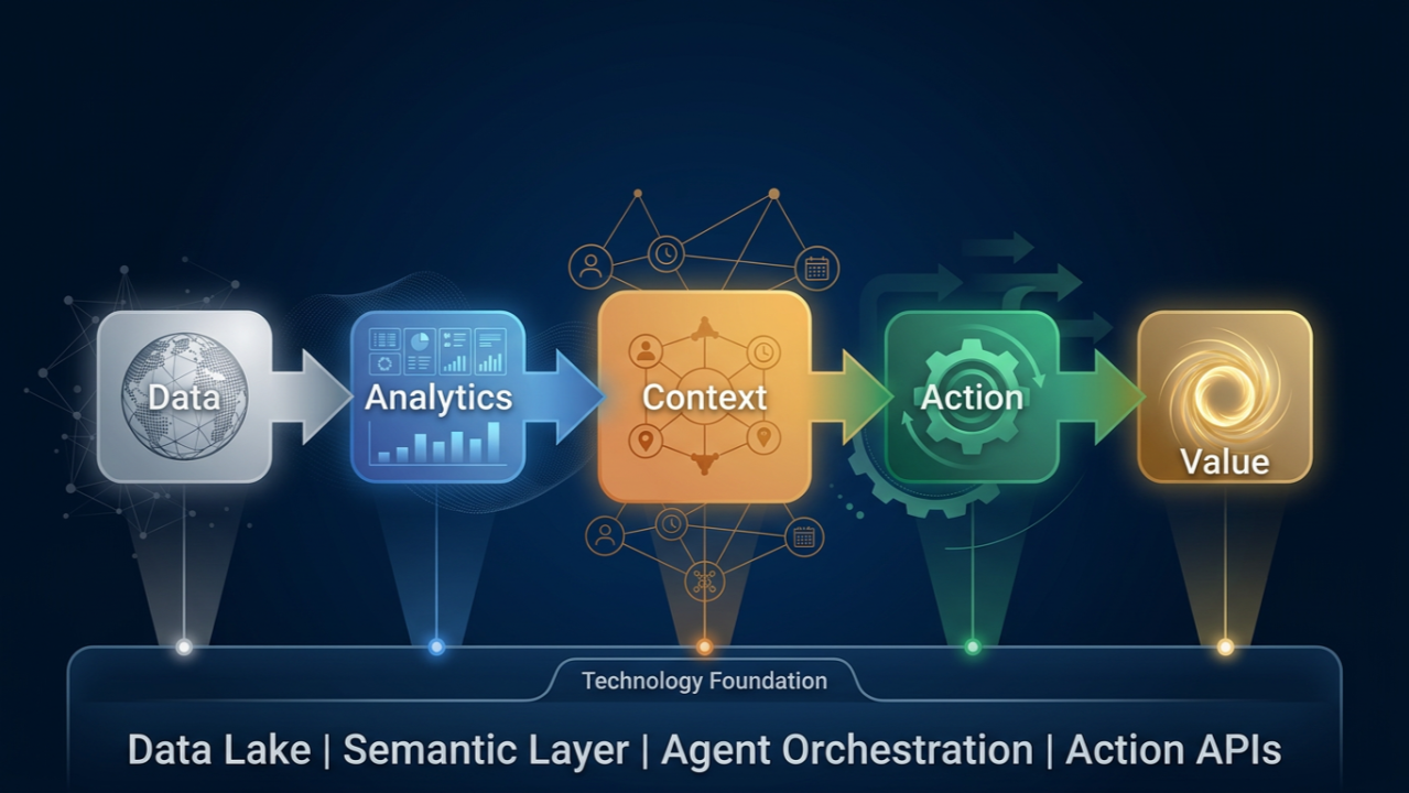 The advantage will go to the companies that connect data, context and process well enough to move from insight to action first.